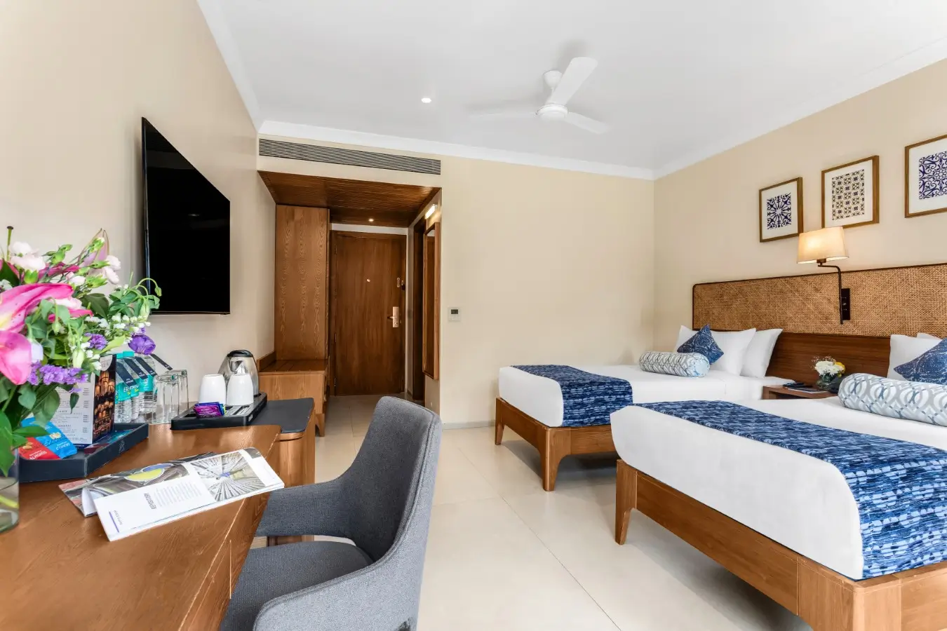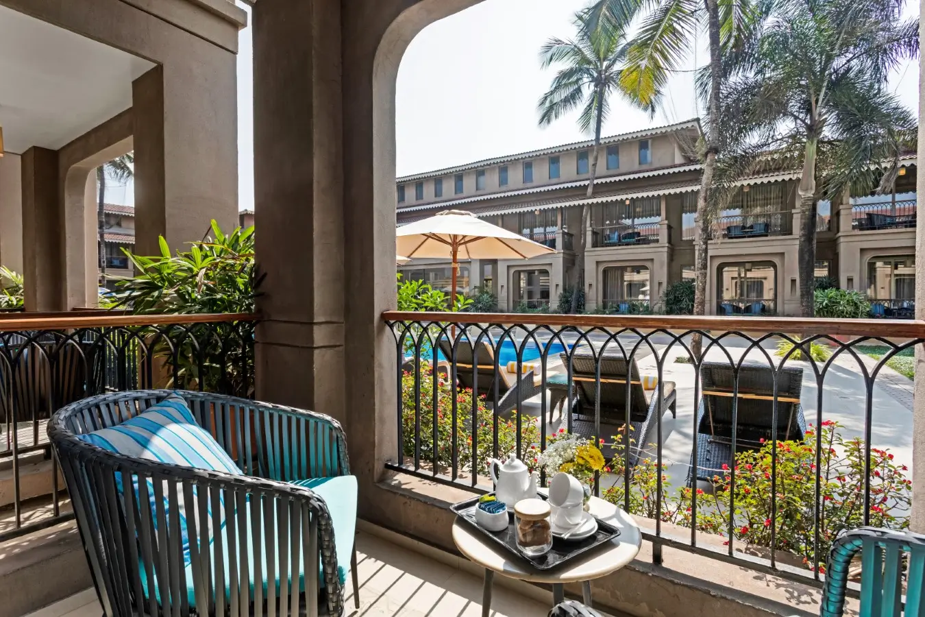 The 280 sq ft Premium Pool View Rooms at Marquis Resort Goa are styled to feel easy and lived-in, with modern comfort balanced by Goan accents that keep the setting unmistakably Goa. Twin beds make sharing the room simple, whether you’re travelling with friends, family, or colleagues. Step onto the private balcony for open pool views and warm daylight, then slip back in when you want a cooler, quieter pause between beach hours and evening plans.